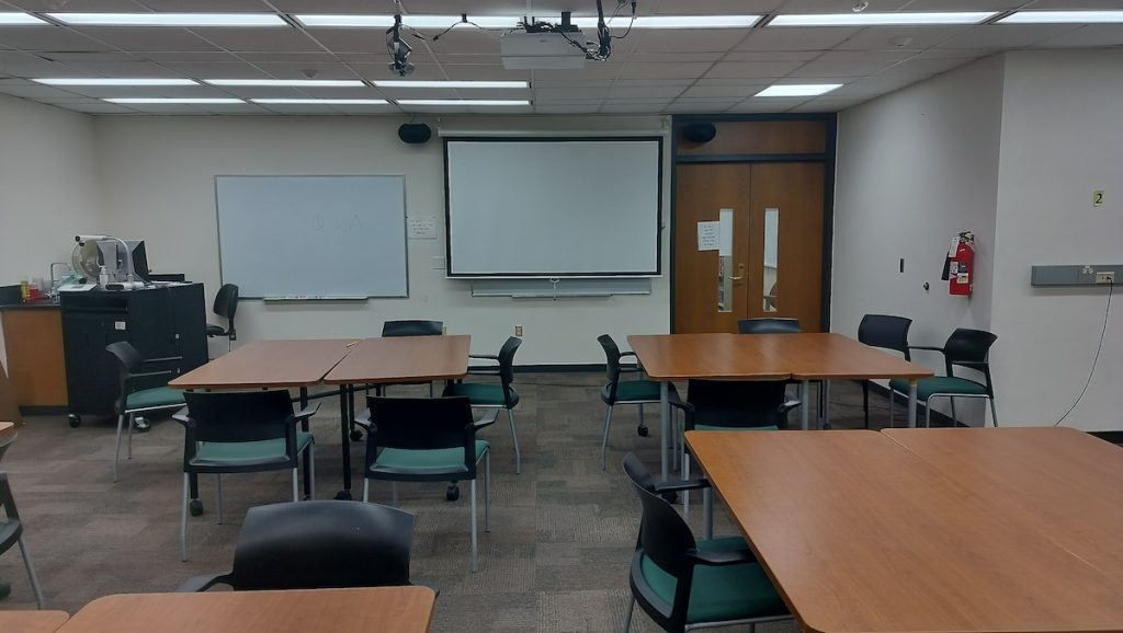 215 Teacher Education Bldg. Seating Capacity – 15 Laptop Inputs – HDMI, USB-C adapter In-room Computer – Dell PC Videoconferencing – PTZ Camera, wireless mic/speaker puck Additional Inputs – DVD Player, Document Camera A/V System Instructions